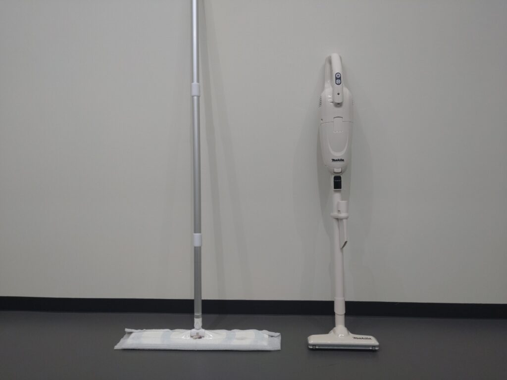 掃除機とクイックルは所定の位置へかける(床に置かない)